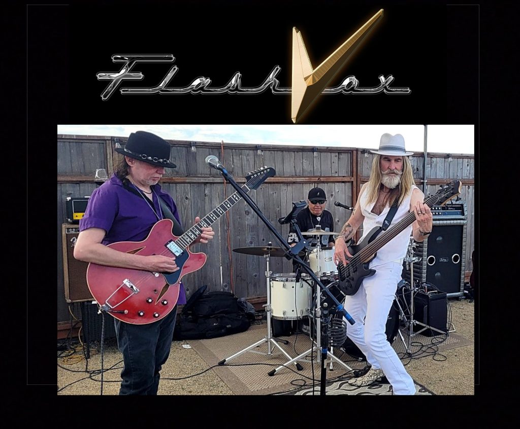 FlashVox features Dan Parslow (guitar), Bobby Stevens (bass), and Ray Merrill (drums). All are seasoned professional musicians with decades of experience, and have shared the stage and recordings with icons such as Gregg Allman, Ronnie Montrose, Taj Mahal, Burt Bacharach, Mick Fleetwood, Buffy Sainte-Marie, The Indigo Girls, B.B. King, Jackson Browne, Bill Kreutzmann (Grateful Dead), Lisa Loeb, Brenda Russell, Lamont Dozier (Motown Records) – just to name a few. Their collective song catalog spans engaging multi-genre hits, including a core repertoire of rock, blues, funk, country, pop, and jazz. Each member packs a double punch of not only excellence at his instrument, but also strong vocal talents. Tight grooves, emotive dynamics, and fully interlaced harmonies characterize this engaging trio.